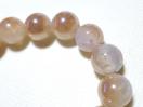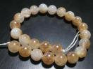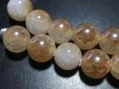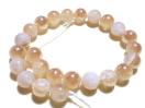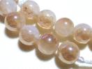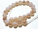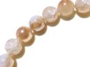 画像は天然石ビーズの半連です。直径約8mmの丸玉で、美しいクラック(ひび)模様が特徴的です。透明感のあるオレンジがかった色合いと、内側から輝くような質感が魅力的なビーズです。