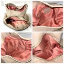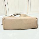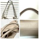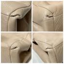 持ち手スレ汚れ、コバにひび割れ、付け根に少しキレあります。本体、スレや小傷箇所はありますが比較的綺麗です。内側、ファスナーポケット周りにボンド染みがあります。以上のことがありますがまだまだお使いいただけるお品です。