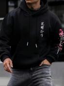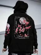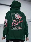 メンズ秋冬フローラルプリント裏起毛フーディースウェットシャツ、多用途カジュアルルーズフーディー
