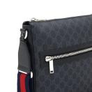 ■詳細説明/【人気商品】、GGスプリームメッセンジャーバッグ(ショルダーバッグ),ネイビー×レッドのウェブライン(シェリーライン)のショルダーストラップ(長さ:Max125.0cm(調整可能)、幅:5.0cm),前面にファスナー付きポケット,ファスナー開閉式,中にファスナー付きポケット