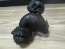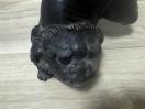 今回ご紹介するのは、迫力のある木彫りの獅子(狛犬またはシーサー)の置物です。熟練の職人によって丁寧に彫り上げられた、重厚感あふれる逸品で、細部まで見事に表現されています。特に顔の表情やたてがみ、渦を巻く背中の装飾は圧巻で、見る者を惹きつけます。