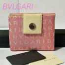 BVLGARI ブルガリ ロゴマニア キャンバス×レザー 二つ折り 財布 ウォレット レディース ピンク アイボリー D5236020Z3