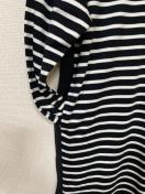 Pour toujours(プルトゥジュール)のM〜Lサイズ長袖ワンピースです。ブラックとアイボリーのボーダー柄が特徴で、Vネックですっきりとした首元を演出します。ゆったりとしたシルエットでリラックスして着用でき、両サイドポケット付きの黒無地切り替えデザイン背中部分が透け感が有りおしゃれなアクセントになっています。