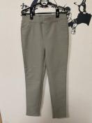 素材はポリエステル60%、綿35%、ポリウレタン5%で、厚手のストレッチ素材が特徴。裏地はフリースのような起毛素材になっており、これからの季節に暖かく着用いただけます。伸縮性があり、ウエストもゴム仕様なので快適な履き心地です。