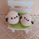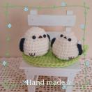 ★アクリル毛糸で編んだ、シマエナガちゃんの親子です。ちょっと首をかしげた表情が、何とも言えず可愛らしいシマエナガちゃんです。