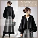 〜3L*ぽわん袖前ZIPトップス&ヘリンボーン柄ロングスカー