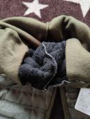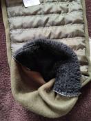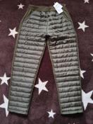こちらは新品タグ付きのカーキ色キルティングパンツです。内側は肌触りの良い黒い裏ボア仕様となっており、軽量ながらも非常に高い防寒性を誇ります。肌寒い季節から本格的な冬まで、快適に過ごせること間違いなしの一枚です。