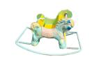 可愛いお馬さんの青と黄色のプラスチック製ロッキングホース、ベルト付き幼児向けの安全設計。