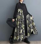 ロング丈前開きフレアワンピース