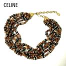 正規品 CELINE セリーヌ ヴィンテージ ウッドビーズ ストーン マルチストランド ネックレス エスニック チョーカー アクセサリー