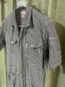 GRACE ENGINEER'S オールインワン つなぎ 半袖 ヒッコリー サイズL グレー ストライプ 半袖つなぎ ヒッコリー オールインワン ツナギ つなぎ