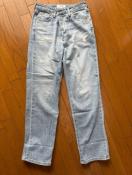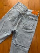 昨年、店頭で17,000円で購入。サムシングとのコラボデニム、メイドインジャパンです。ストレート、9号サイズ。股下約75センチ、画像の裾をひと折りしているものは10センチほど折り返した状態です(その場合の股下は約64センチになります)。お出かけ時に2回着用後、お洗濯済み、綺麗な状態です。一回の着用時間は3時間ほどですので着用に伴うクタクタ感はないかと思います。店頭販売時は、裾を折り返した状態で並んでいました、履き方に決まりはありませんが、靴のヒールの高さに合わせて裾の折り返し幅を調整されても。レタパプラス発送予定、ノークレームノーリターンでお願いします。