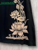 左前にアジアンなロータスの抜染プリント入りののロングスカートです。