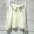 ■サイズ:ブラウス:M 着丈約59cm、身幅約48cm、肩幅約33.5cm、袖丈約61.5cm