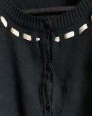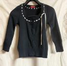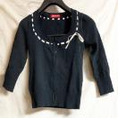 ・ブラックのカーディガンに、襟にイエローベージュのサテンリボンがアクセントになって、可愛いです。
