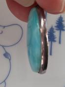 なるべく近い色にしようと思っていますが、どうしてもラリマーは写真だと実物通りになりにくく、少し濃く写っています。ラリマーですので薄い水色です。