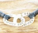 スターチャーム、4つ編みしたネイビーのワックスコード、パズルチェーンで構成されたアンクレット。