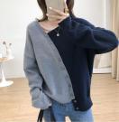 裾不規則配色ニットセーター