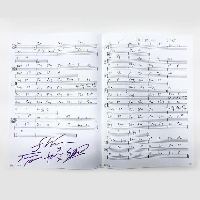 ANIMAX MUSIX 2025 YOKOHAMAに出演したfhana様の楽曲、涙のパレード (映画『小林さんちのメイドラゴン さみしがりやの竜』オープニング主題歌)の譜面コピーにメンバー全員のサインを入れたもの