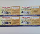 ワタミ 株主優待 500円割引券 4枚セット 2026年5月末まで