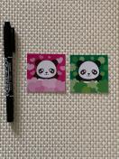ピンクとグリーンの2種類のデザインがあり、どちらも愛らしい表情のパンダがモチーフになっています。