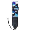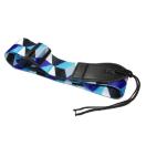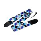 白色、黒色、青色、水色、グレー色の幾何学模様のデザインで、かっこいいストラップです。