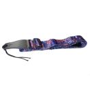 青色にオレンジ色の花柄の民族風のデザインで、オシャレなストラップです。