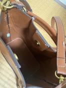 昨年、店頭で10,000円位で購入。ブラウン系、手持ち、肩掛け、斜めがけができます。ショルダーストラップは取り外し可能、当方はストラップは外して使用していました。ファスナーポーチが何気に便利です、交通系カードを入れておりました。お出かけ時に数回(10回以内)使用、内側の底に2ミリほどの剥げがございますが、内側底ですので気にならない程度かと思います。当方も今回の出品に際し細かくチェックするまで気づきませんでした。他は特記すべきダメージはないかと思います。プレーンな色合いで万人受けするデザインのバッグです。レタパ入りません、定形外かゆうパック発送予定、その分格安で出品しています、ノークレームノーリターンでお願いします。締切日時