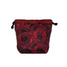 深みのある赤色が魅力的なバラ柄の巾着袋です。