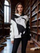 レトロ 猫 グラフィック フード付きスウェットシャツ - & タビーの猫プリント、肉球プリント、長袖プルオーバー パーカー、オールシーズン カジュアル セーター レディース、かわいいスウェットシャツ、ヴィンテージスタイル パーカー、ソフト生地 パーカー、心地よい服、ヴィンテージファッション