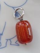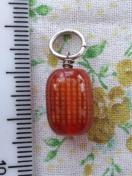 小さなメノウのナツメ型ビーズに般若心経が彫ってあります。そこにワイヤーを通し丸かんをつけました。