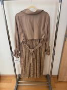 トレンチコートのようなデザインに、バックスタイルやスカート部分の繊細なレース切り替えが特徴です。ウエストのリボンベルトでスタイルアップも叶います。