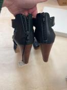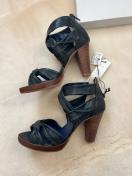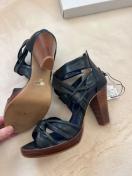 デザインは、甲の部分に施された結び目のディテールと、安定感のあるチャンキーヒールが特徴です。足首をしっかりとホールドするアンクルストラップは、バックジップ仕様で着脱もスムーズ。歩きやすさとデザイン性を両立させています。
