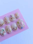 ☆チェックしていますがハンドメイドの為よく見ないとわからない程度のホコリや気泡、チップや3Dのわずかな形・大きさの不揃い、同サイズチップのカーブ(幅)の若干の違い、裏面へのジェルのはみ出し、ムラ・ハケ跡等がある場合がございます。