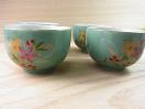 やさしい色合いに、手描きの花模様が美しい峰山作の煎茶碗です。