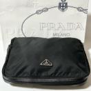 PRADA プラダ ナイロン サフィアーノ レザー ポーチ クラッチ バッグ ブラック シルバー金具 D5797020b