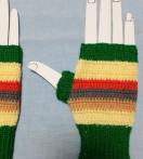 ビビッドカラーの毛糸を、組み合わせて指無し手袋を作りました。