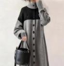 ┗スタンドリブネックでお洒落な雰囲気を演出するぽわん袖ニットロングワンピース