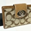COACH コーチ シグネチャー 二つ折り ターンロック 財布 キャンバス レザー ベージュ ブラウン A2221020v