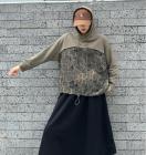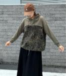 ヒョウ柄切り替えパーカートレーナー