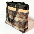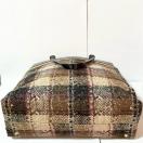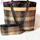 BURBERRY Logo Embossed Check Pattern Wool Suede Calf Leather Tote Bag with Pouch
