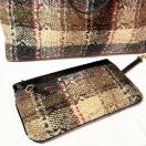 BURBERRY バーバリー ロゴ型押し チェック柄 ウール スエード カーフ レザー トートバッグ ポーチ付き C2222120L