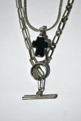クロスモチーフがスタイリングのアクセントに。モードにもカジュアルにも使えるネックレスアイテム。単体でもセットでも使用可能な2連ネックレス。異なるチャームを組み合わせているので、単体でも使用可能です。メンズライクにも女性らしいスタイルにも馴染みます。