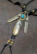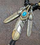 上下金ターコイズフェザーをメディスンホイールに組みスモールハートフェザーをあしらったトップをホワイトハーツ黒7oとゴールドビーズにてキムタク仕様にて組み上げました♪
