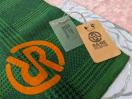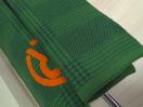 グリーン系の爽やかなお色にオレンジ色のロゴが