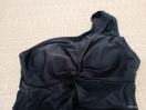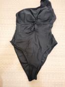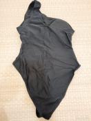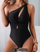 ワンショルダーデザインが魅力の黒色ワンピース水着です。