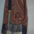 ■ブラウン系ペイズリーのような柄に落ち着いたパープルのフリンジ付きでラルフローレンお好きな方ですとこれ1枚のストールでお持ちのラルフのサファリスタイルやマリンスタイルなどをはじめどのパターンにも相性よくできておりますのがラルフローレンのスタイルですのでさらにワンランク上のラグジュアリーなスタイルになりますかと存じます。