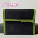 美品 PRADA プラダ テスートナイロン レザー リボン 三つ折り 財布 札入れ 小銭入れ カード入れ ブラック D9285021Y
