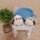 ★アクリル毛糸で編んだ、シマエナガさんの親子(ドイリー付き)です。
