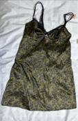 オリーブグリーンのレオパード柄キャミソール、Mサイズ、レース付き。